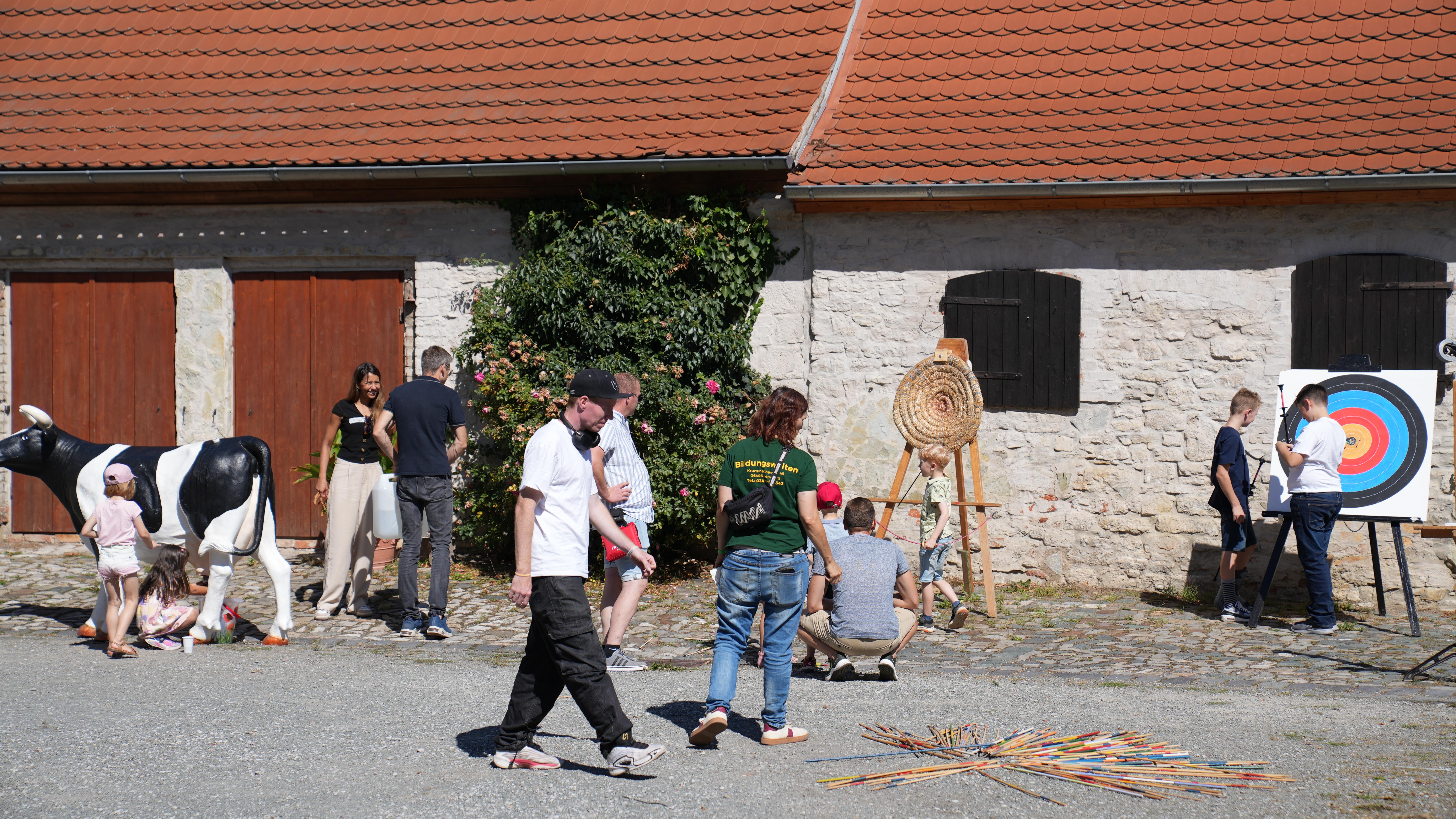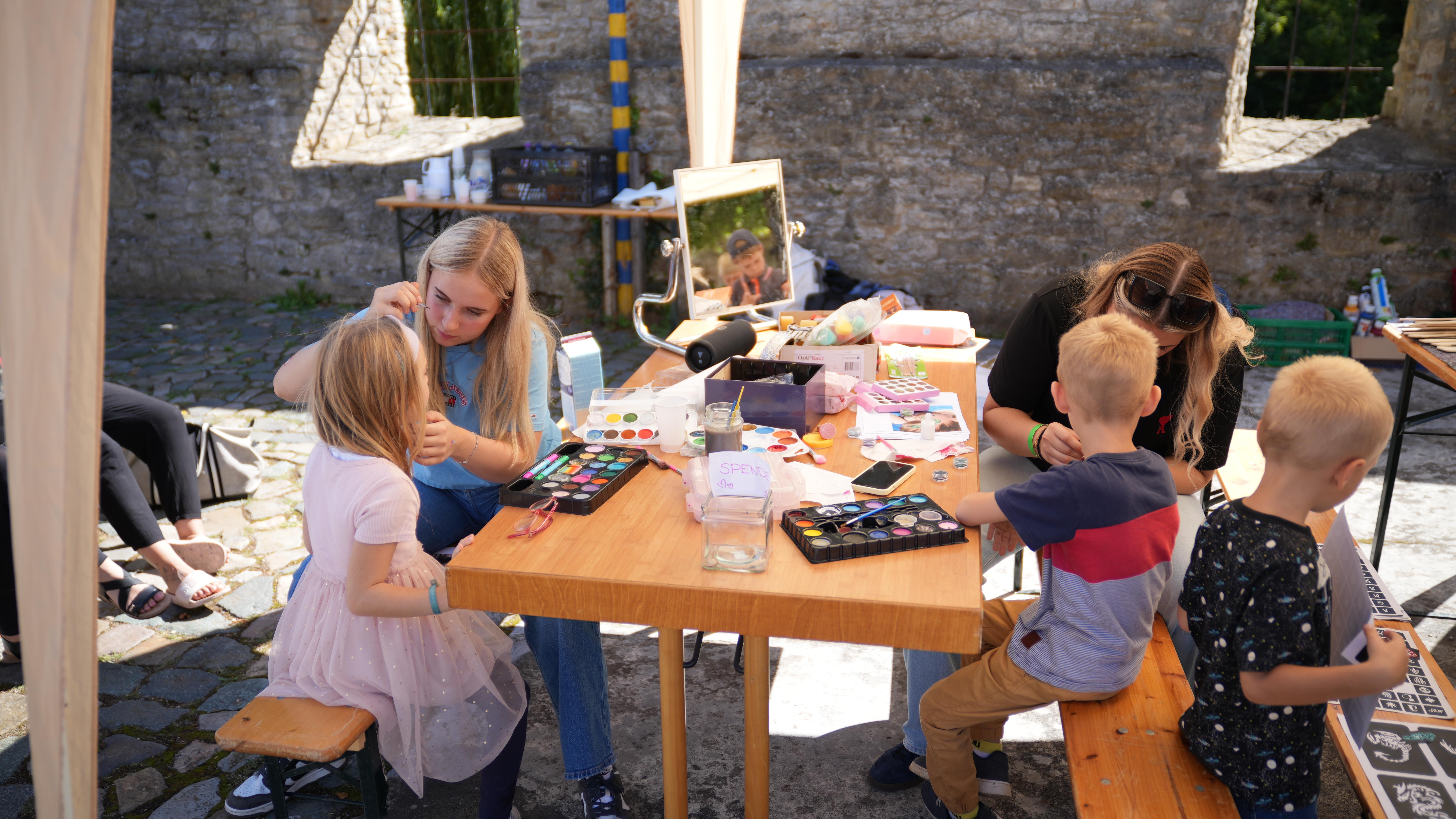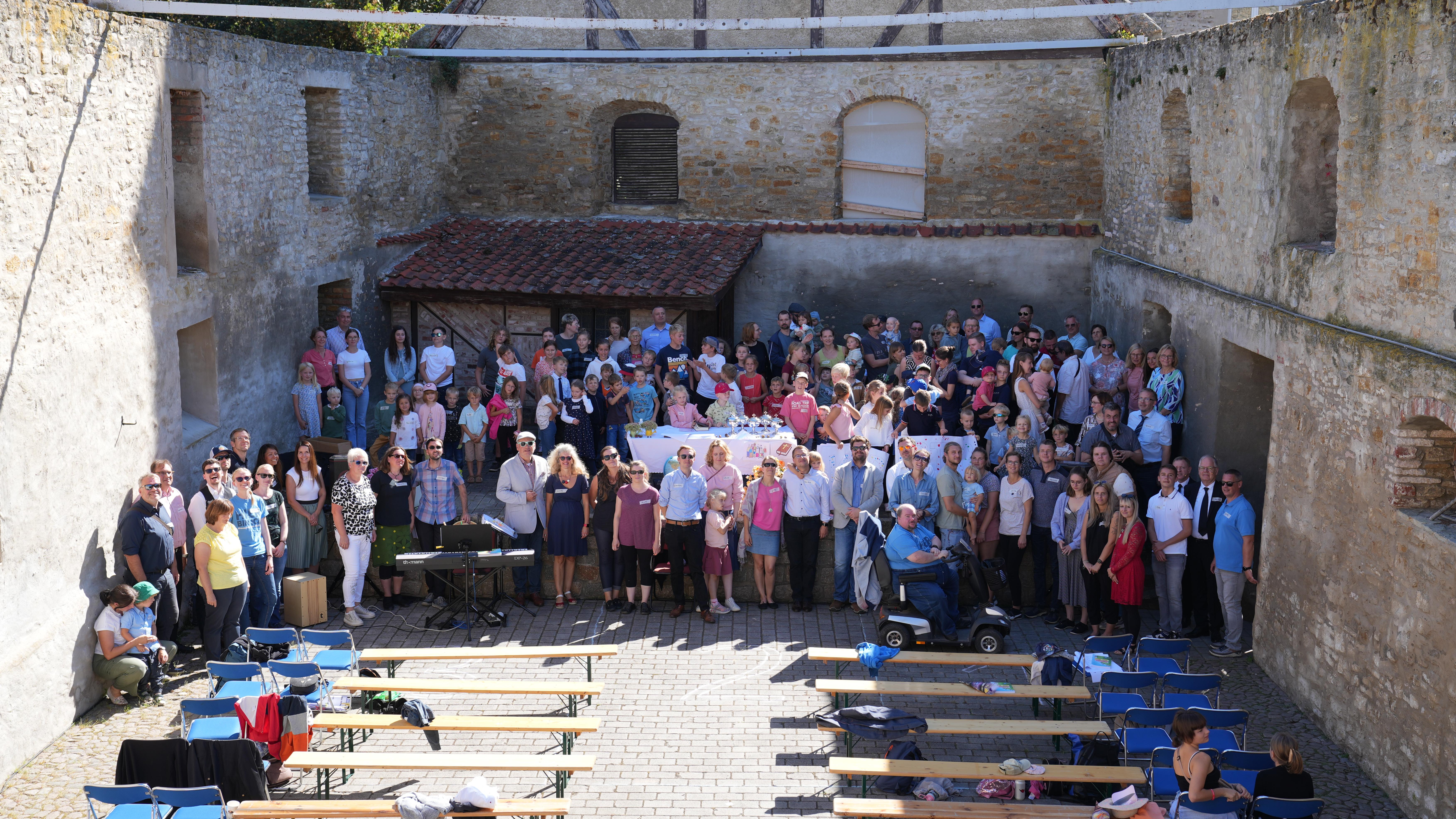 Die über eintausend Jahre alte, gut erhaltene Burganlage wurde schon mehrmals für Kindertage genutzt. Im ehemaligen Pferdestall, welcher mit Bühne und Empore ausgebaut wurde, fand zu Beginn der Kindergottesdienst bei „Hammer-Wetter“ statt. Über 160 Teilnehmende waren gekommen, um den Kindertag zu erleben.