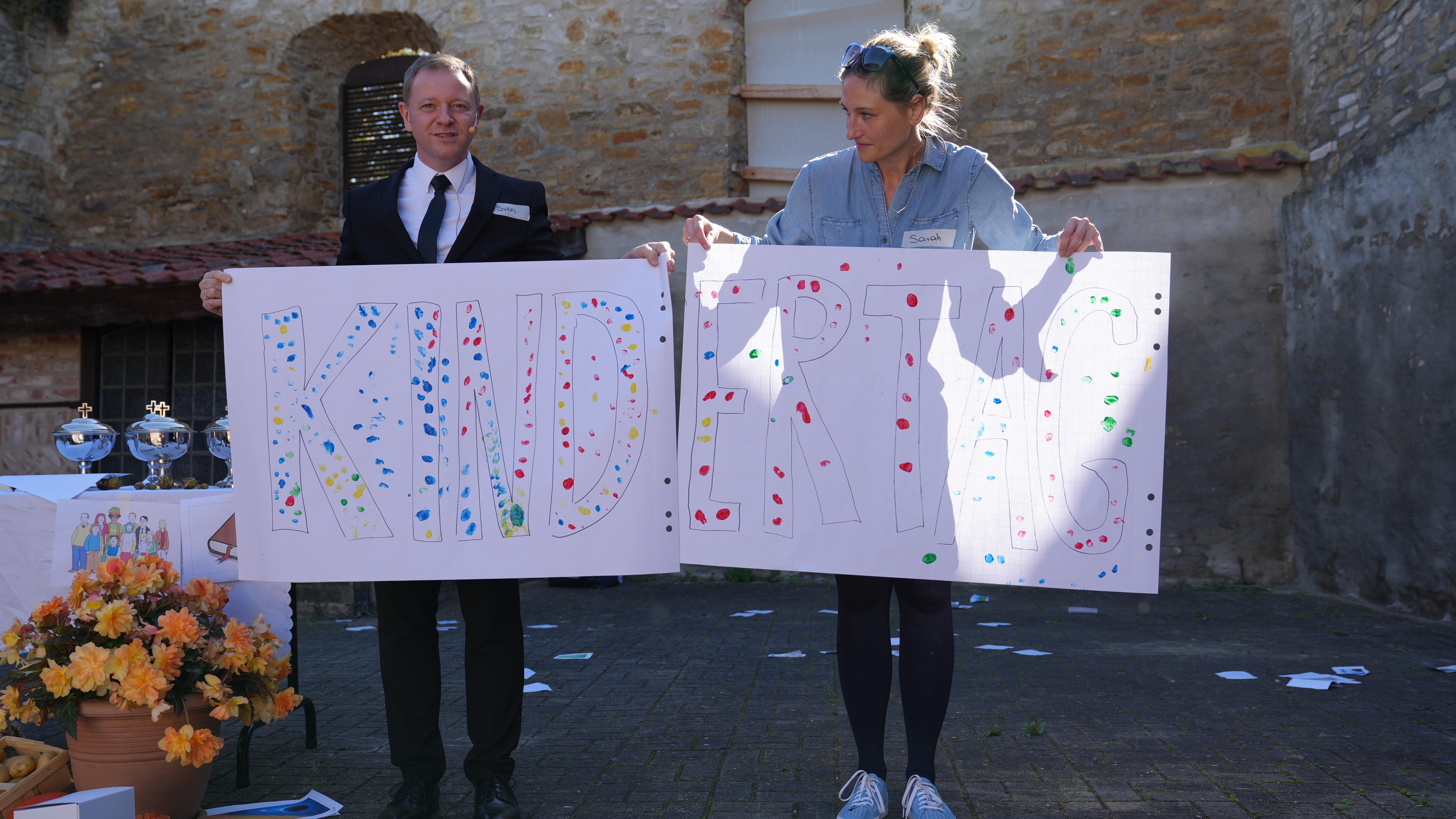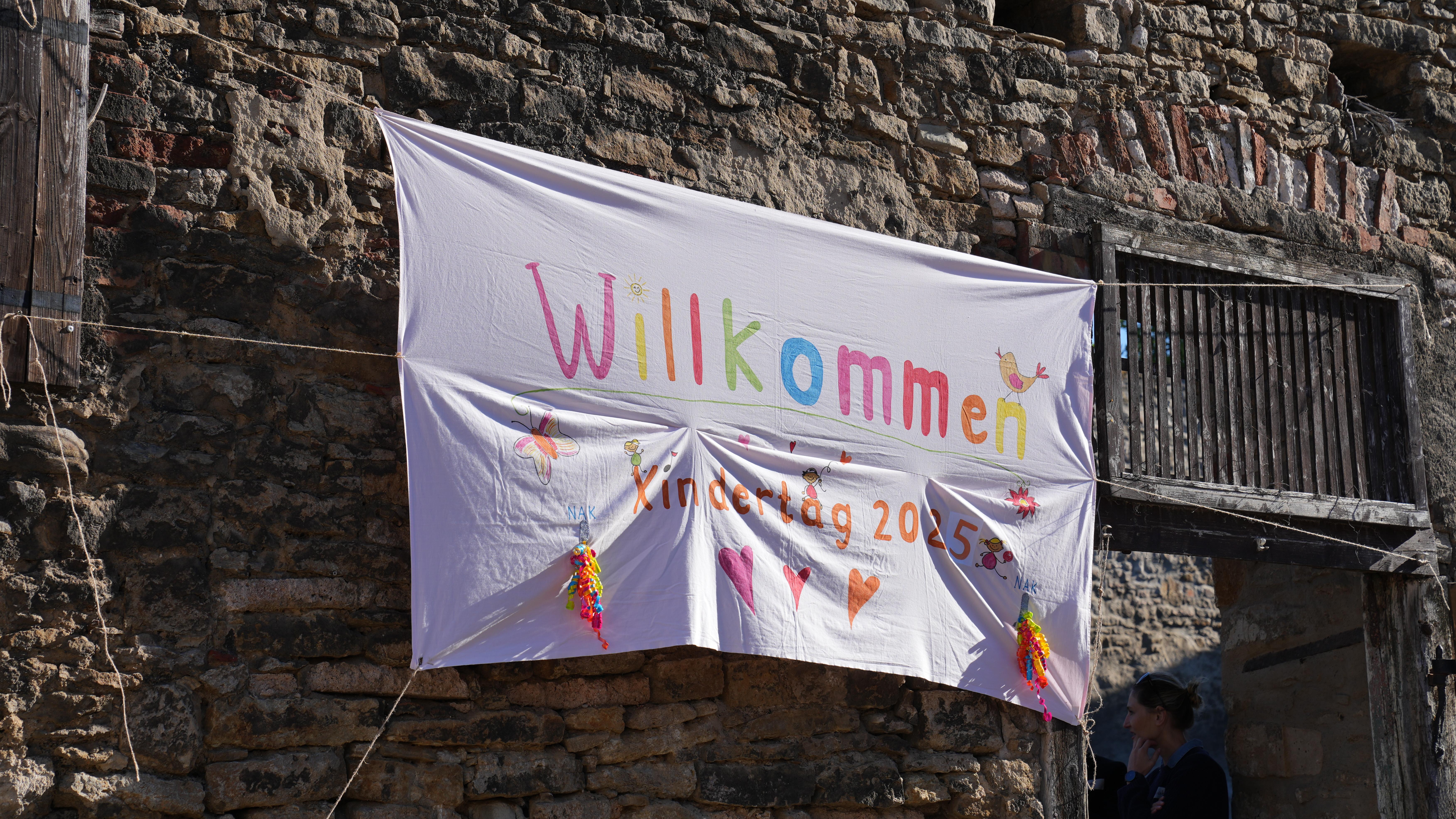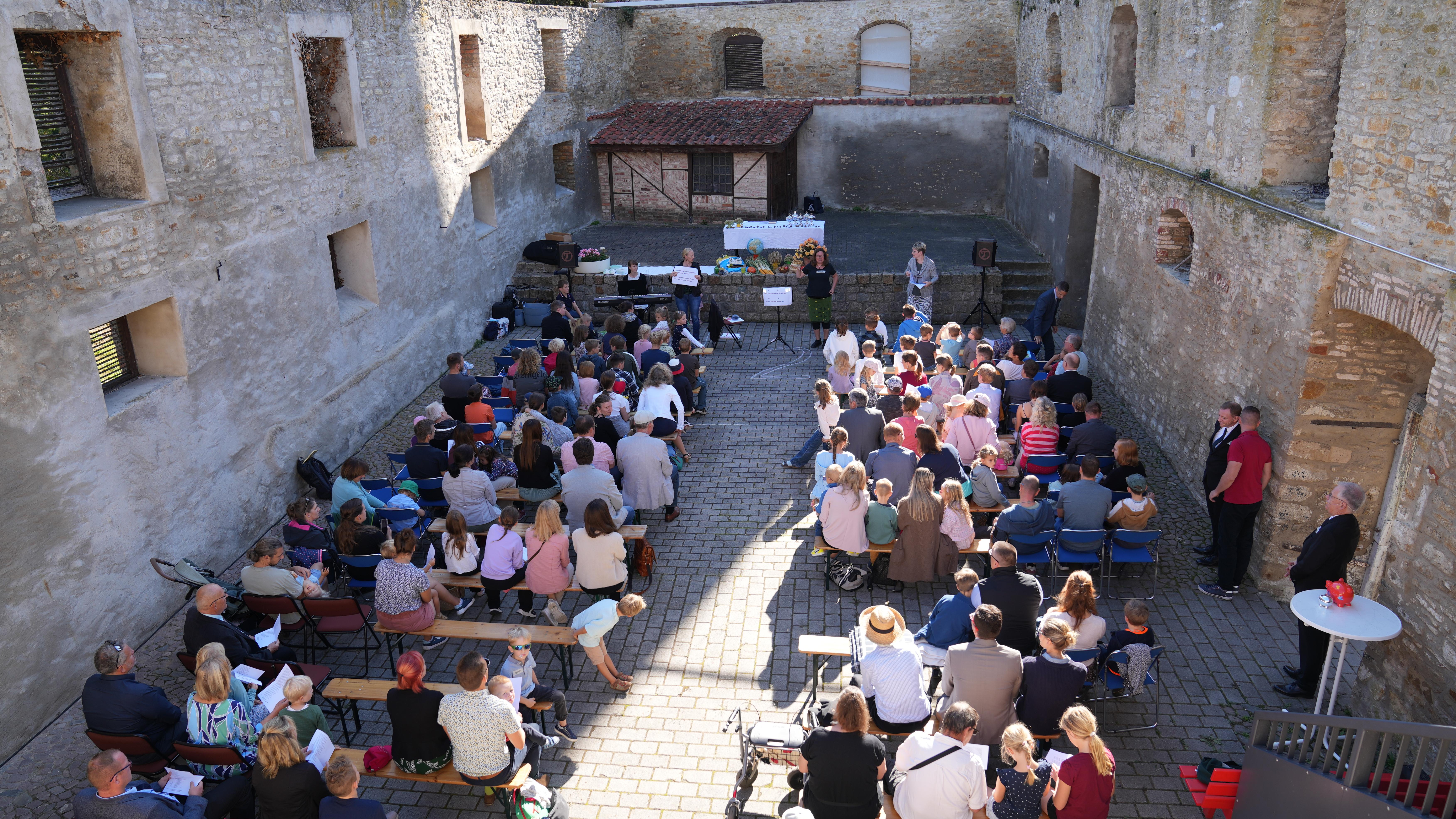 Die über eintausend Jahre alte, gut erhaltene Burganlage wurde schon mehrmals für Kindertage genutzt. Im ehemaligen Pferdestall, welcher mit Bühne und Empore ausgebaut wurde, fand zu Beginn der Kindergottesdienst bei „Hammer-Wetter“ statt. Über 160 Teilnehmende waren gekommen, um den Kindertag zu erleben.